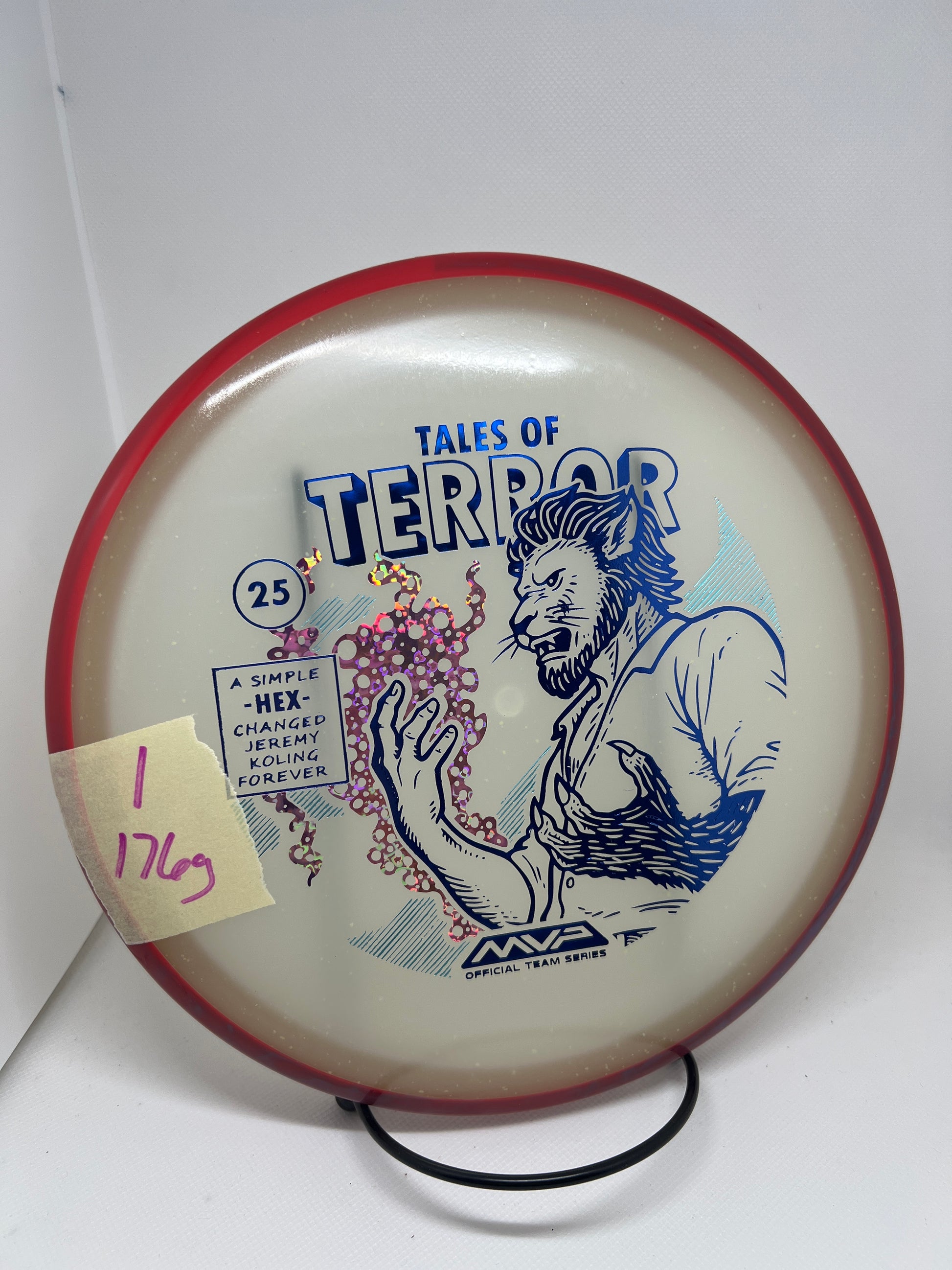 DoubleRam Design shows us the terrifying alternate origin of Jeremy Koling’s childhood nickname - Lionheart - on the new Particle Eclipse Hex! Made with our industry-leading Eclipse plastic, this new blend of glow with colorful particles inside gives the disc its own magical feel. As a straight flying midrange, the Hex is set to become even more mesmerizing than before with its straight to understable flight allowing for exceptionally easy line shaping - showcasing why the Hex is one of the most versatile discs around. Unleash your inner beast and shred the course with the Particle Eclipse Hex, available at your favorite local or online MVP dealer!